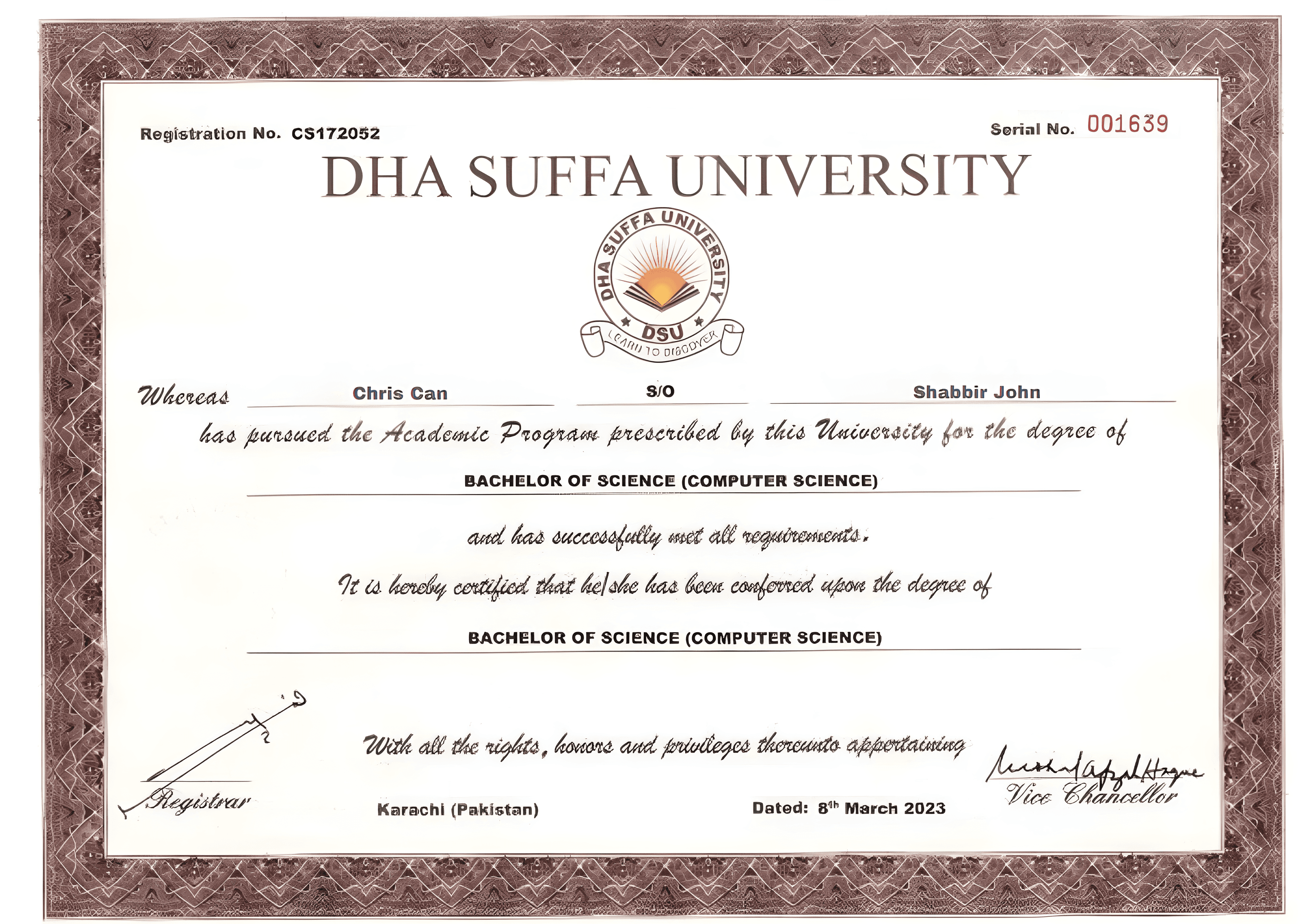 Suffa University, Karachi DHA Relevant coursework in Software Engineering